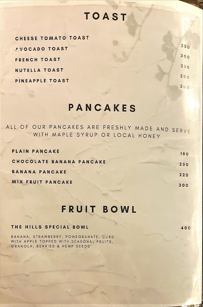 The Hills Menu